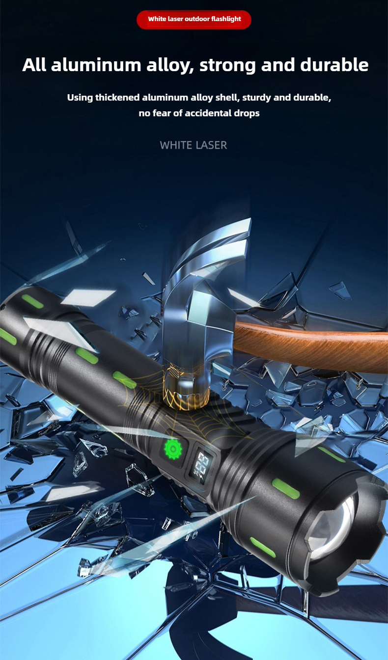 Equipped with a single white laser lamp bead, the WS001A flashlight has a luminous flux of up to about 800 lumens, which can provide powerful lighting effects.